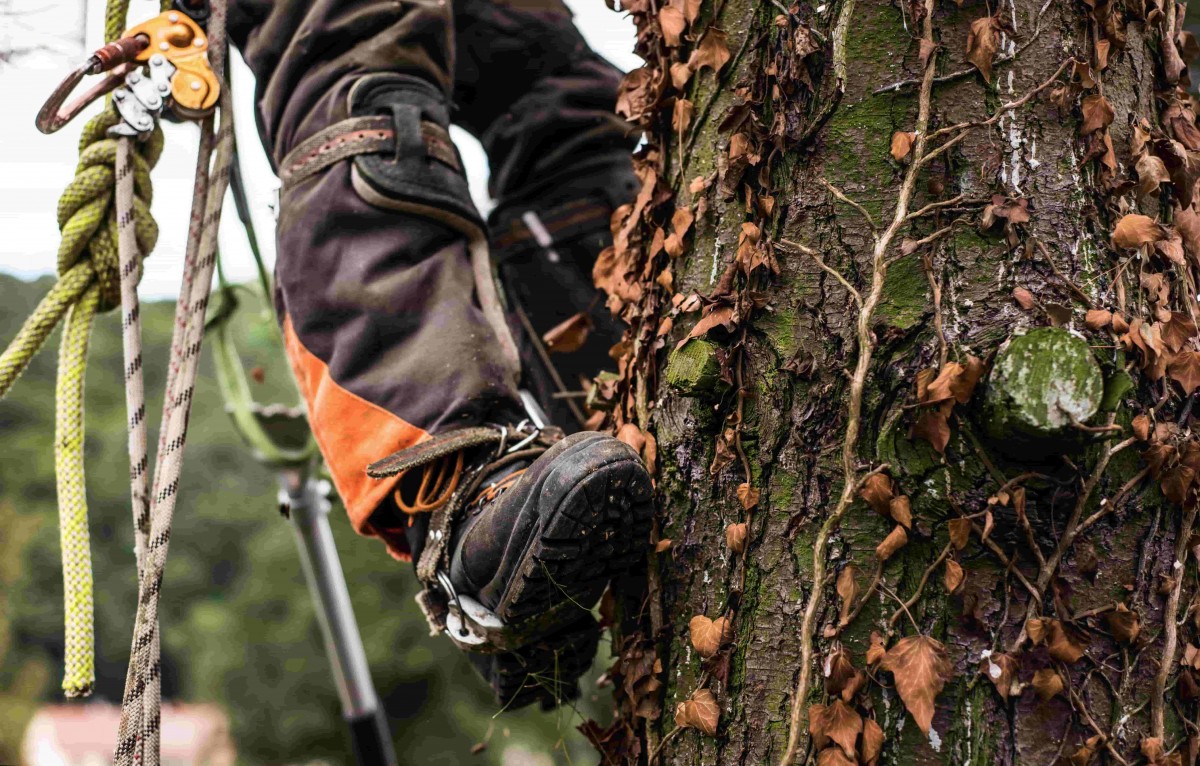 soit ils grimpent à l’arbre équipés d'un harnais et de cordes, soit ils utilisent une nacelle araignée quand l’espace le permet.
